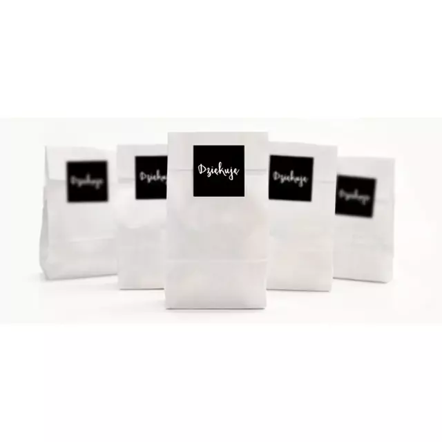 Akcesoria - Torebki papierowe białe dziękuję czarne, 5 szt