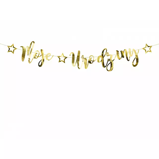 Akcesoria - Baner Moje urodziny, złoty, 16,5x90cm