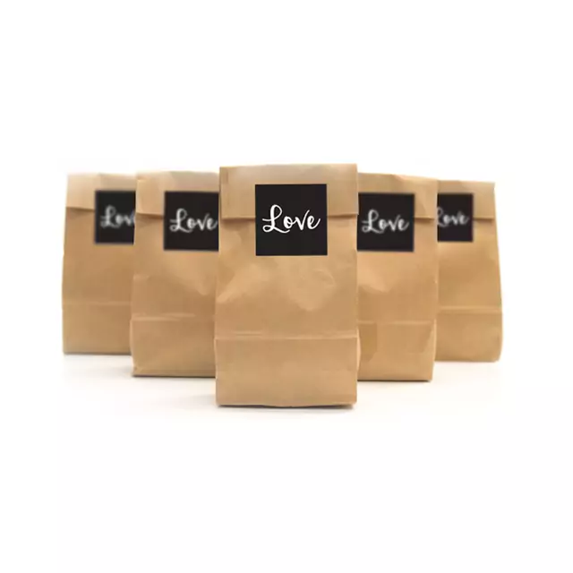 Akcesoria - Torebki papierowe kraft Love czarne, 5 szt
