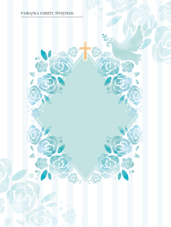 Niebiański gołąb symbolizujący czystość i niewinność w towarzystwie cudownych róż. W takiej formie plakat jest idealną pamiątką Chrztu Św.